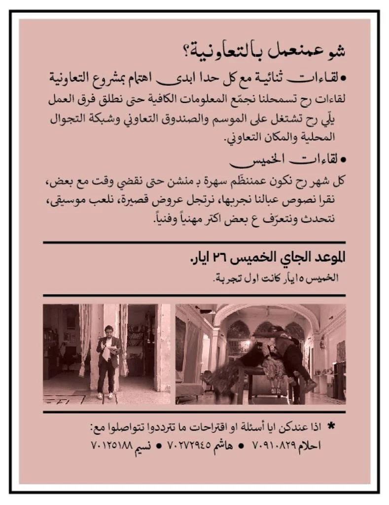 لقاءات ثنائية مع كل حدا أبدى إهتمام بمشروع التعاونية